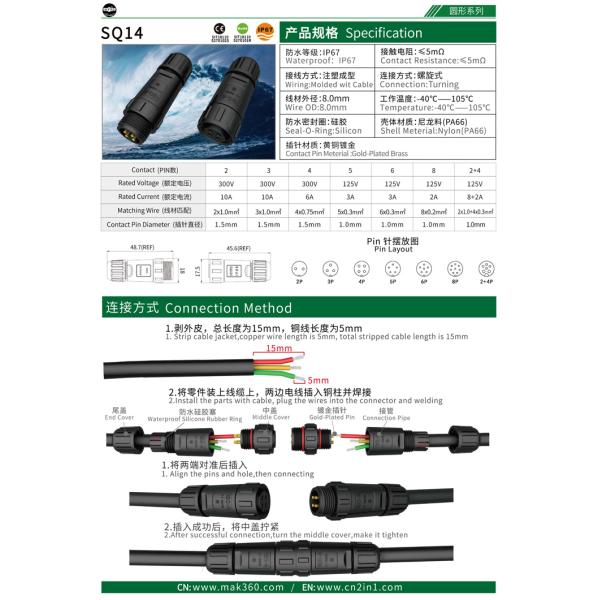 | Item name | SQ14 IP68 field mountable waterproof circular connectors | Connecting code | Soldering assembly |